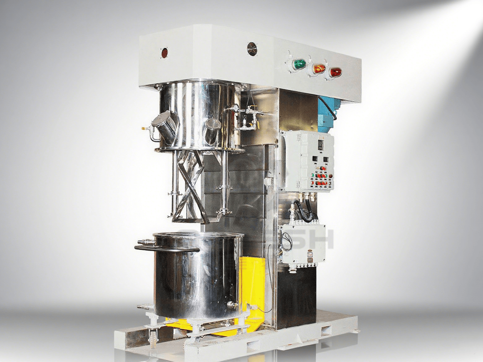 雙行星動(dòng)力攪拌機(jī)雙行星動(dòng)力混合機(jī)是一種新型且對多種混合液體、粉體進(jìn)行攪拌、溶解、分散、均質(zhì)效率好的攪拌設(shè)備。該設(shè)備配有高速、低速、活動(dòng)刮板部件,低速攪拌部件采用行星齒輪傳動(dòng),攪 -
